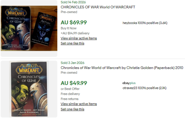 World of Warcraft books can be hit or miss in terms of value and sell through rate so always do your research. I was luckily enough that this was the only listed within Australia and WoW fans wanted to get their hands on a copy without needing to import it from overseas.