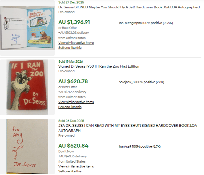 What does that tell you? It’s not worth pursuing. The only Dr. Seuss books were pursuing are the early 1st edition, 1st printing books.