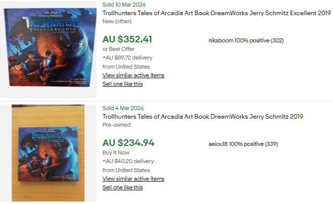 Looking at Active and Sold Listings for this TV show don’t show anything crazy (apart from the art book) so I wouldn’t recommend going out and watching it to become familiar. If you come across Trollhunters Tales of Arcadia Art Book I’m hoping you pick it up because it’s one of the “art of“ books that I constantly talk about it, not because it’s Trollhunters.