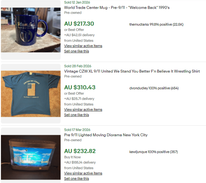 I still think it’s cool and I think it’s a reminder to you that if you spot New York anything, look for the towers. It’s morbid sure, but it’s nothing worse than going to estate sales or owning items that previously belonged to someone that’s no longer with us. With the amount of scams and bad things going on in the world, selling pre 9/11 items doesn’t even register.