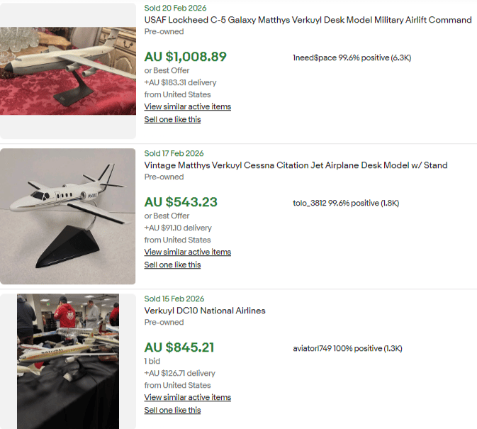 With both selling for $300USD, regardless of condition, that gives us a pretty good idea of what it’s worth. Are you the type of reseller that would list for $300USD? Discount at $250USD? I’m the opposite, this goes up for $350USD which is $500AUD. Without my listing this doesn’t exist and if a cashed up pilot wants a Verkuyl they’re going to pay it.