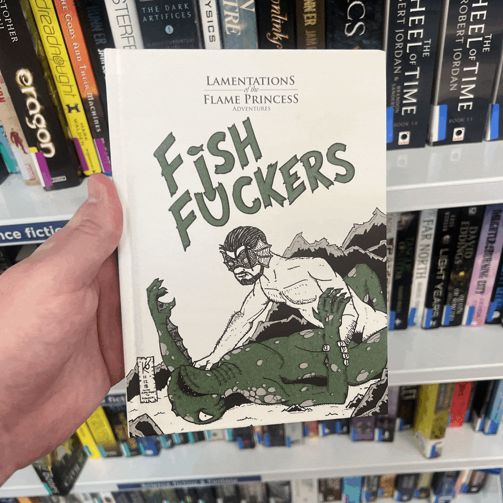 I took a look around the internet for any place selling this book and it was hard to find anything but I did find 2 random independent book stores. Going off their pricing I felt comfortable sticking a $300 price tag on it. Yep, $300. I even joined and posted in a Lamentations of the Flame Princess Facebook Group with the price and somebody said “That's a great price for fishes“.