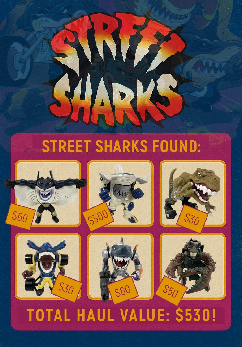 That’s exactly what happened this week. We’ve ticked off a bucket list item of finding Street Sharks in the wild, we have a 4 season TV show that sells for over $250, a 30 minute sale giving me a 25 times return plus $20 into $1,000 worth of books.
