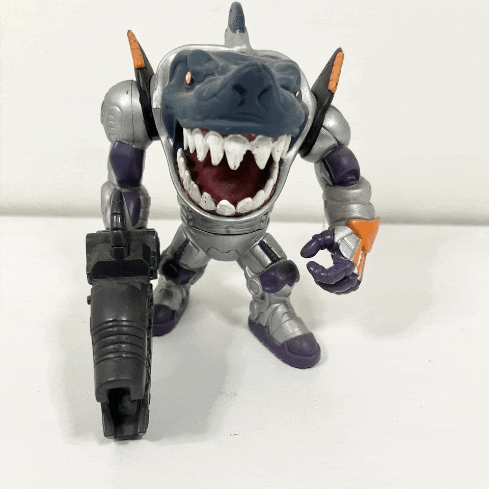 We found ourselves a Street Shark. Street Sharks was an American based animated television show that ran for 3 seasons back in the mid 90’s. Incredibly popular by dudes of my generation that grew up on it. The show was based around these half dudes / half sharks as they battled crime and evil villains and like most of Mattels shows, was created to promote the toy line.