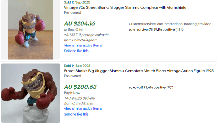 Unlike Funko Pops which were created to be collectible (and thus will be landfill in 15 years) Street Sharks were meant to be played with and in 2025 they’re some of the hottest 90’s toys that collectors are after.