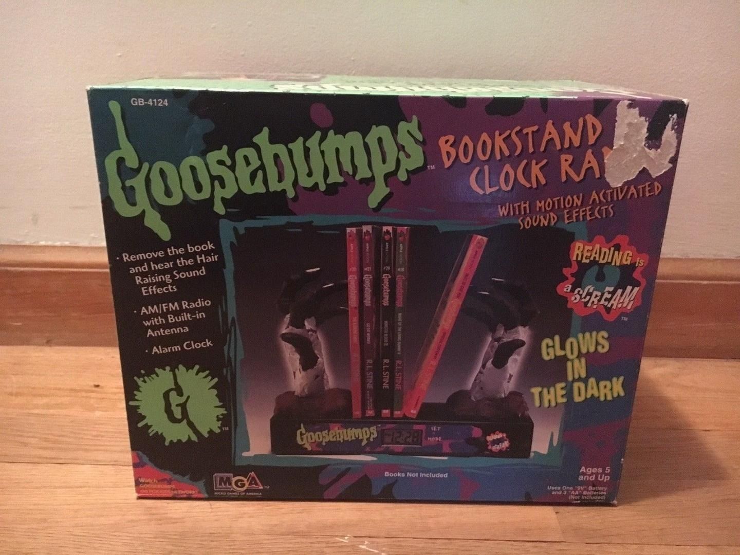 Imagine you’re back in 1996, you fall in love with the series and your parents gift you this after buying it from a Scholastic catalogue. You get it home and you’re so excited because it isn’t just a standard clock radio. It’s motion activated with sound effects and glows in the dark. Take a book from between the hands and you’ll hear “the hair rising sound effects”. Functionality wise you have a clock radio with an alarm plus an AM/FM radio “with a built-in antenna!” You’d be stoked.