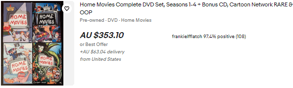 Why? Here’s a fun game: type Home Movies into eBay or Google and see what comes up. I’m trying to do on the fly comp research and the internet is giving me step by steps instructions on recording your own home videos. When you come into a situation like that, you need identifiers. This is an animated show on Cartoon Network so we include that and alas, we have some information.