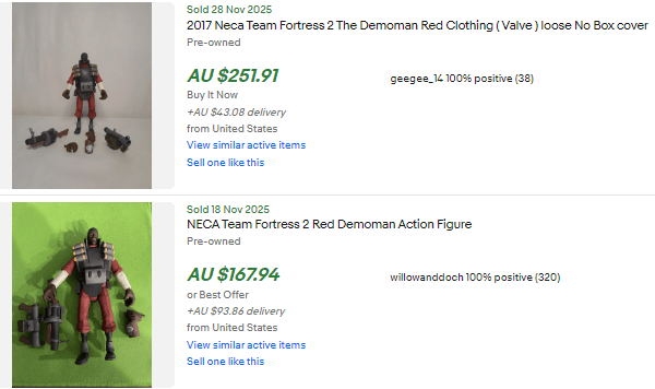 We open up the eBay app and search for Demoman Team Fortress 2 and the results shocked me.