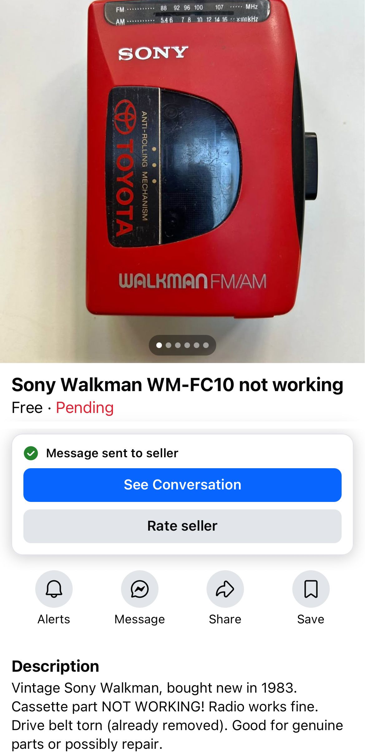 A quick update about the Sony Walkman WM-FX10 that I got for free off Marketplace last week.