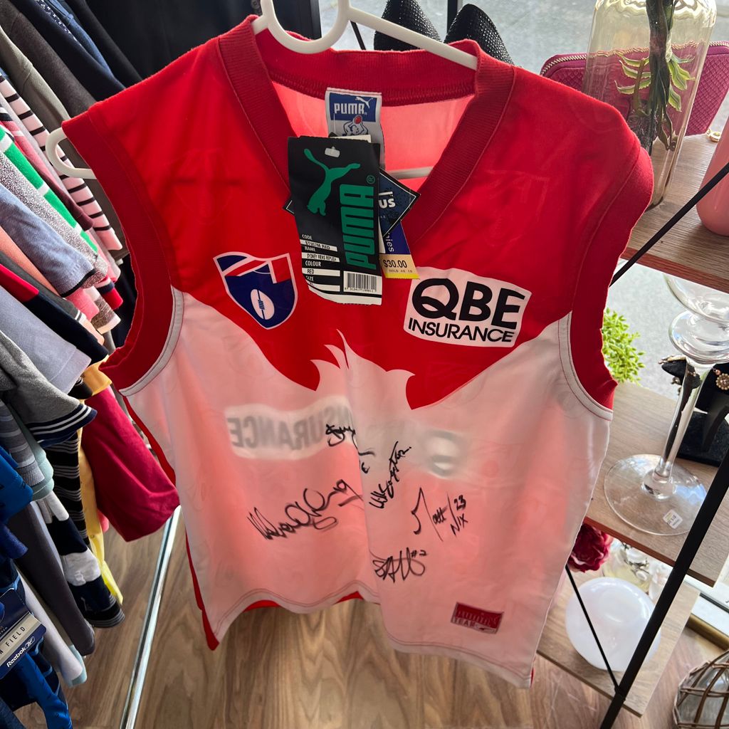 I was surprised to see this signed Sydney Swans jersey in the regular clothes rack of a Vinnies. Here we have a 1997 jersey for $30 yet an hour later I saw a beat up cricket bat signed by Michael Hussey for $75 in a different Vinnies. Make it make sense.
