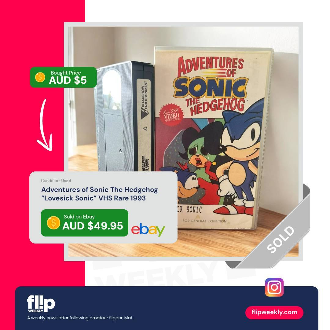 I thank it, and I thank the garage sale God’s because picking this up at last years Garage Sale Trail led to a conversation that led to buying a Sega World Sydney t-shirt. $5 for this VHS, $20 for the t-shirt and after this sale, we’ve got $300 for both combined.