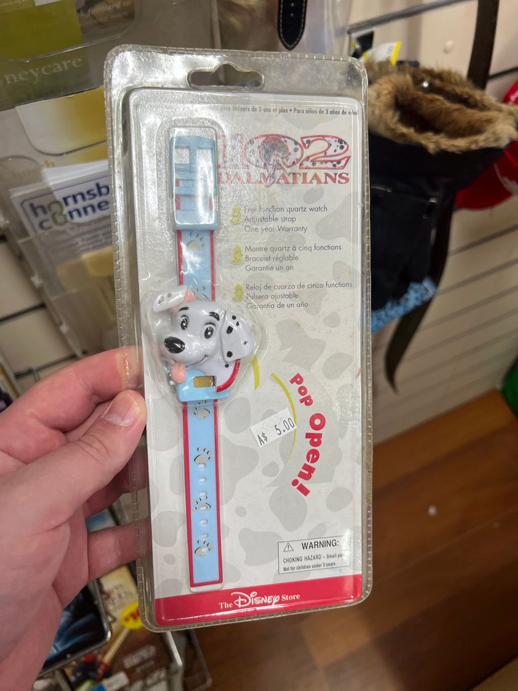 For whatever reason I have a soft spot for late 90’s, early 2000’s pop culture movie watches. I’m being 100% serious, they’re usually made by Playworks here in Australia. Here we have a fully enclosed plastic 102 Dalmatians wristwatch and it was impossible to leave behind. I looked up comps and there appears to only be 1 instance of this watch online and it’s an eBay listing. That eBay listing is described as:
