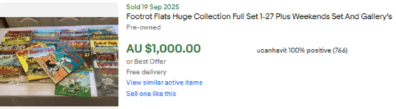 It’s not unusual to see a $1,000 sale price for the full set of Footrot comics.
