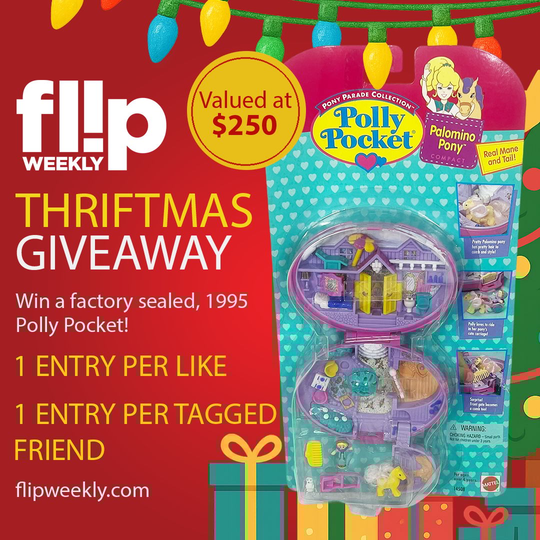 That’s all I’ve got for you this week, remember to enter this weeks Thriftmas Giveaway to win a factory sealed Polly Pocket from 1995. All you have to do is jump on over to our social media accounts and give the post a like or comment. Super simple. Thanks again for reading, I’ll see you next Thursday.