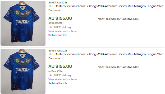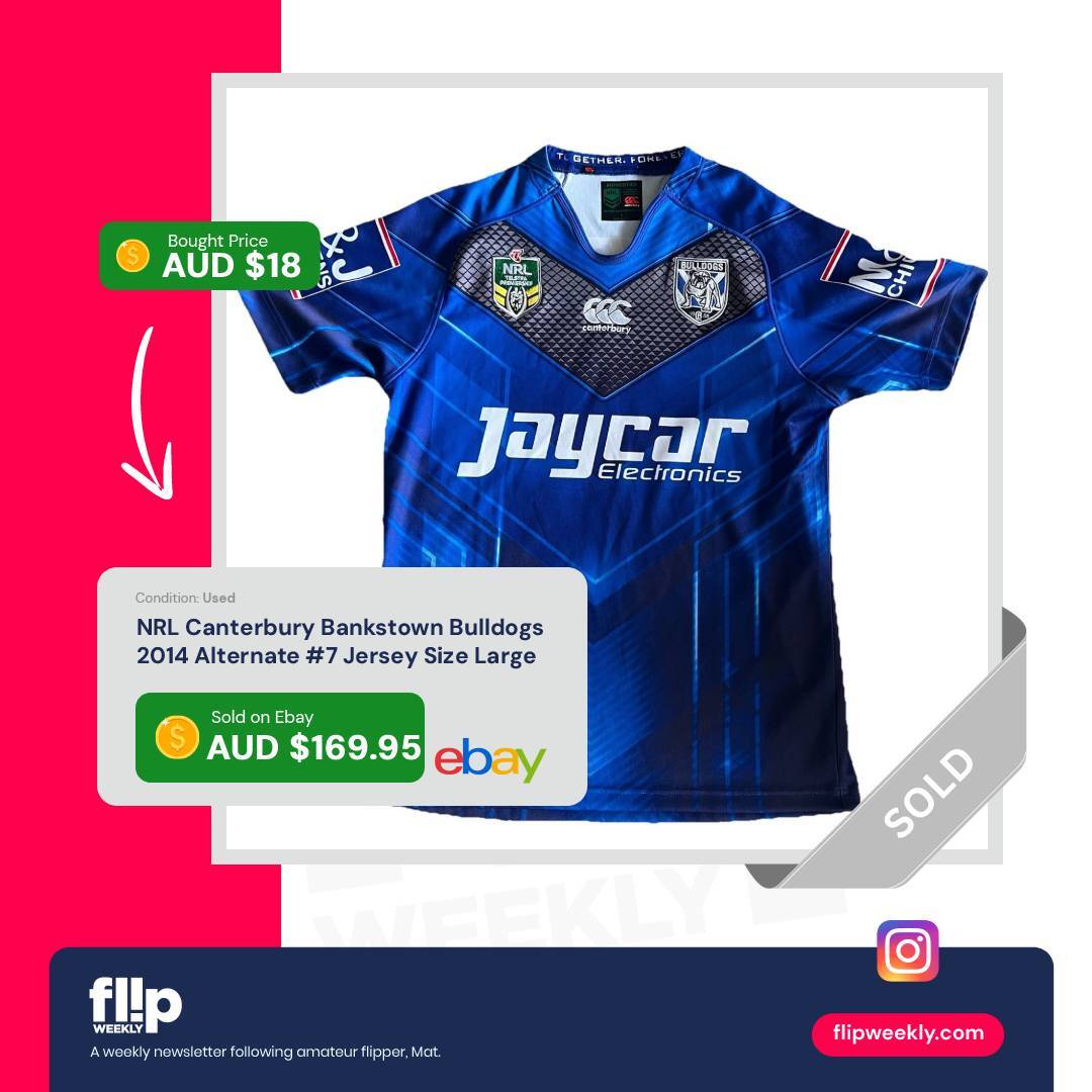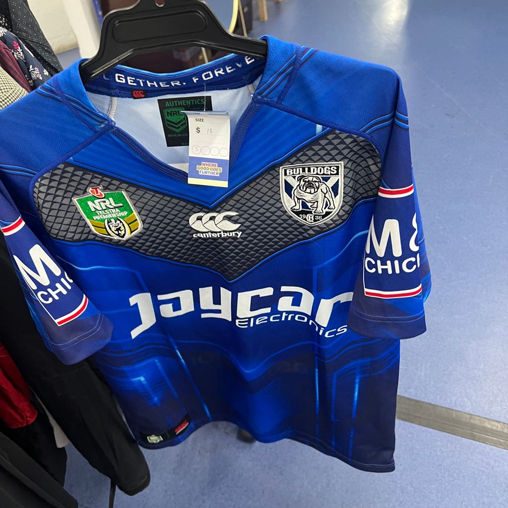 I paid $18 for this 2014 alternate Bulldogs (NRL) jersey. When it comes to sporting jerseys, there’s a few different kinds that the team wear throughout the year. the most common are the regular home jersey which features the primary colors, the away jersey which is usually different shades of their home jersey. Then there’s a whole host of one-offs, like an Indigenous, a Pride (depending on how homophobic the sport is), special events like Centenary of the club or in this case, the alternate.