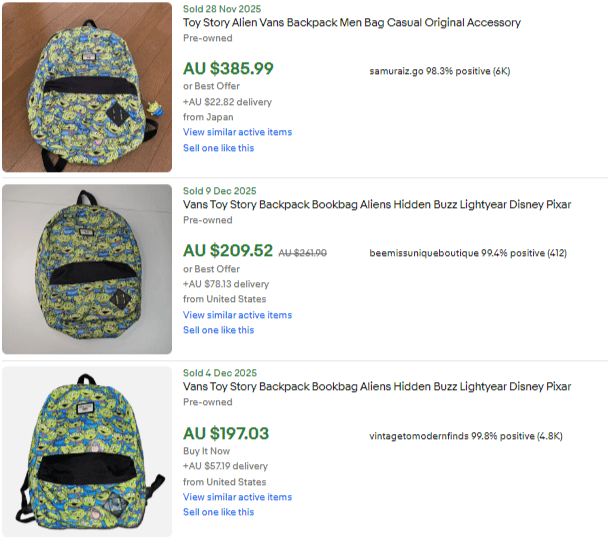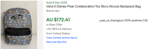It blows my mind, what about the Woody backpack? What’s the most recent Sold Listing?