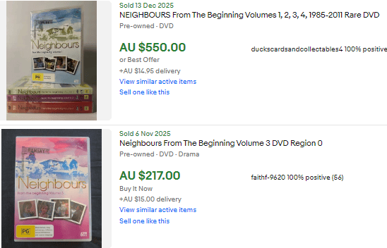It’s worth a lot of money. Despite looking over the shelves several times, convinced my eyes were playing tricks on me, I couldn’t find it. Convinced it was just waiting to get put out, I went back the next day. Same thing, no luck. I guess somebody, somewhere, had just Volume 2 of Neighbours. Weird.