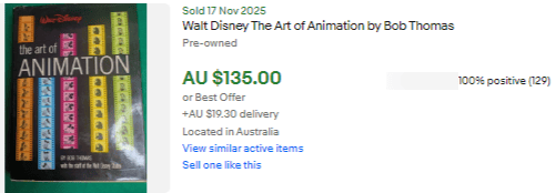 Shout out to brand new eBay seller Darren Wallace who followed this advice and sold a hard cover Disney “The Art of Animation“ this week for over $100.