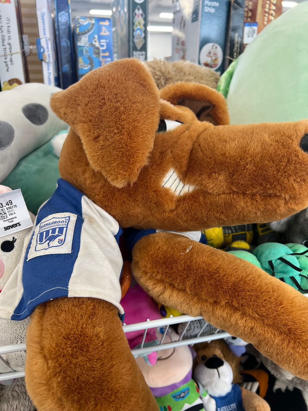 Savers had a $15 price tag on this old AFL Kangaroos plush.