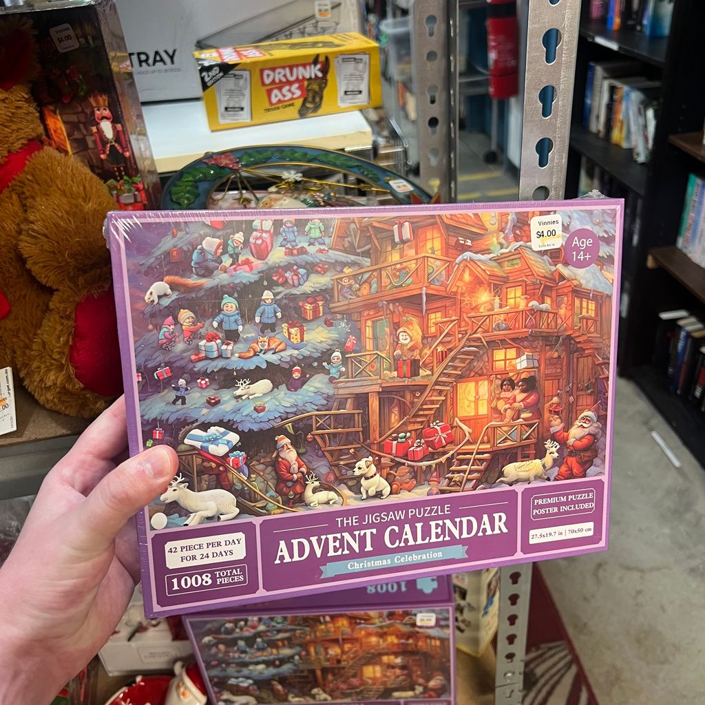 If we jump over to Vinnies for just a moment, this was too weird not to share. With 35 days until Christmas, Vinnies is getting into the spirit. They’ve stocked up on Jigsaw Advent Calendars. For each day leading up to Christmas, you open up a piece of the Advent Calendar and receive 42 pieces of a 1008 piece puzzle. A cool concept for people that like puzzles.