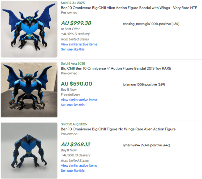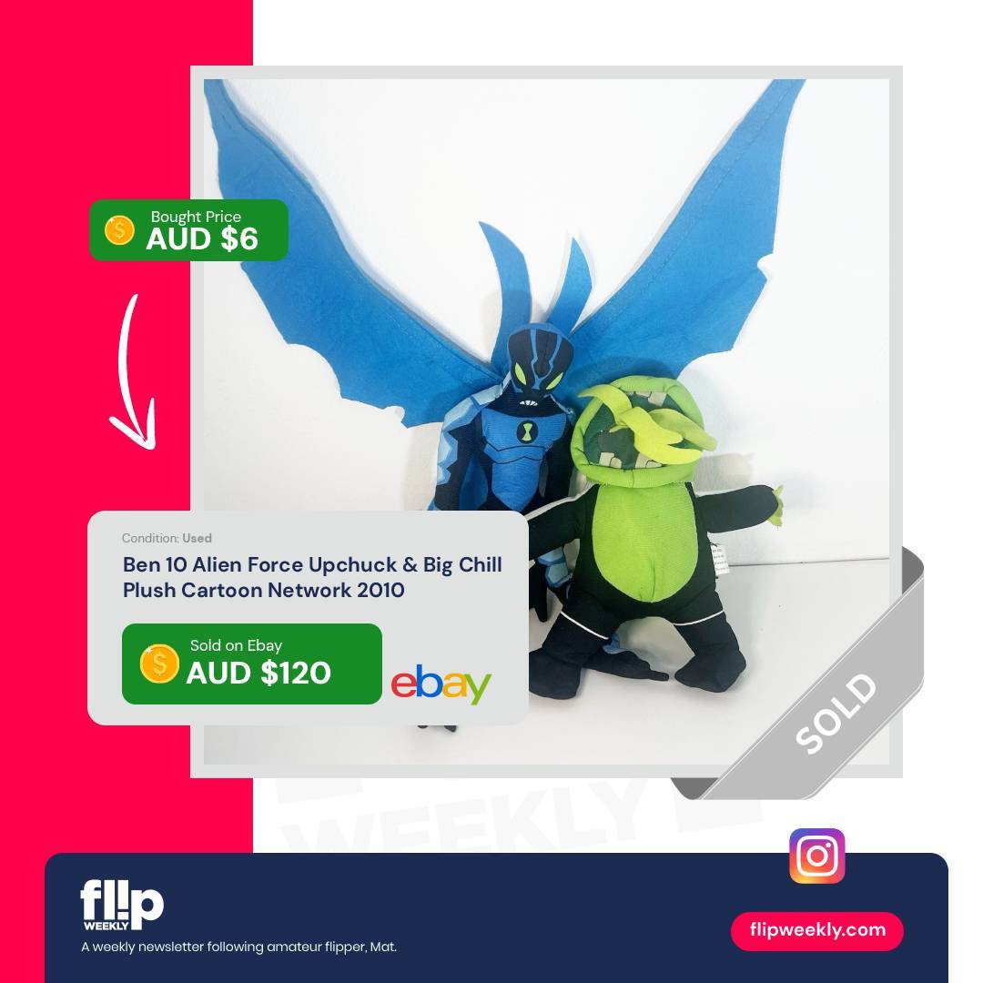 Ben 10 continues to be a television show that should be inspected when you find merchandise, whether it be action figures, plush toys or any other contraption. The show only ran for 3 seasons, which is a surprise given how popular it seems to be in retail. Comp up everything Ben 10, just like I did with these plush toys that cost me $6 in total and have just sold for $120.