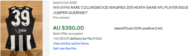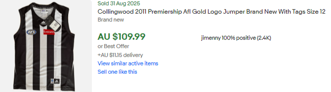 Add on a GPS tag which gives the jersey a bit of mystery and intrigue and we can ask for a bit more. We don’t have a players number on the back so we can’t be 100% sure it was ever issued to a player. So let’s look on eBay. We will price between a regular 2011 jersey and a player issued jersey.