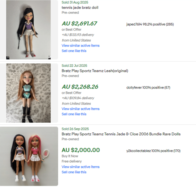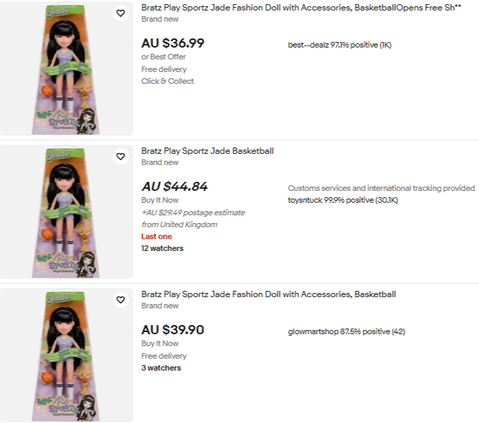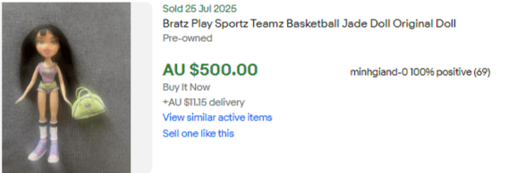 I can’t really believe it, I need some more data to back up this find. I decide to branch up and look on eBay for the highest Sold Listings for “Bratz Doll“. After all, this could be a one-off purchase that doesn’t mean anything.