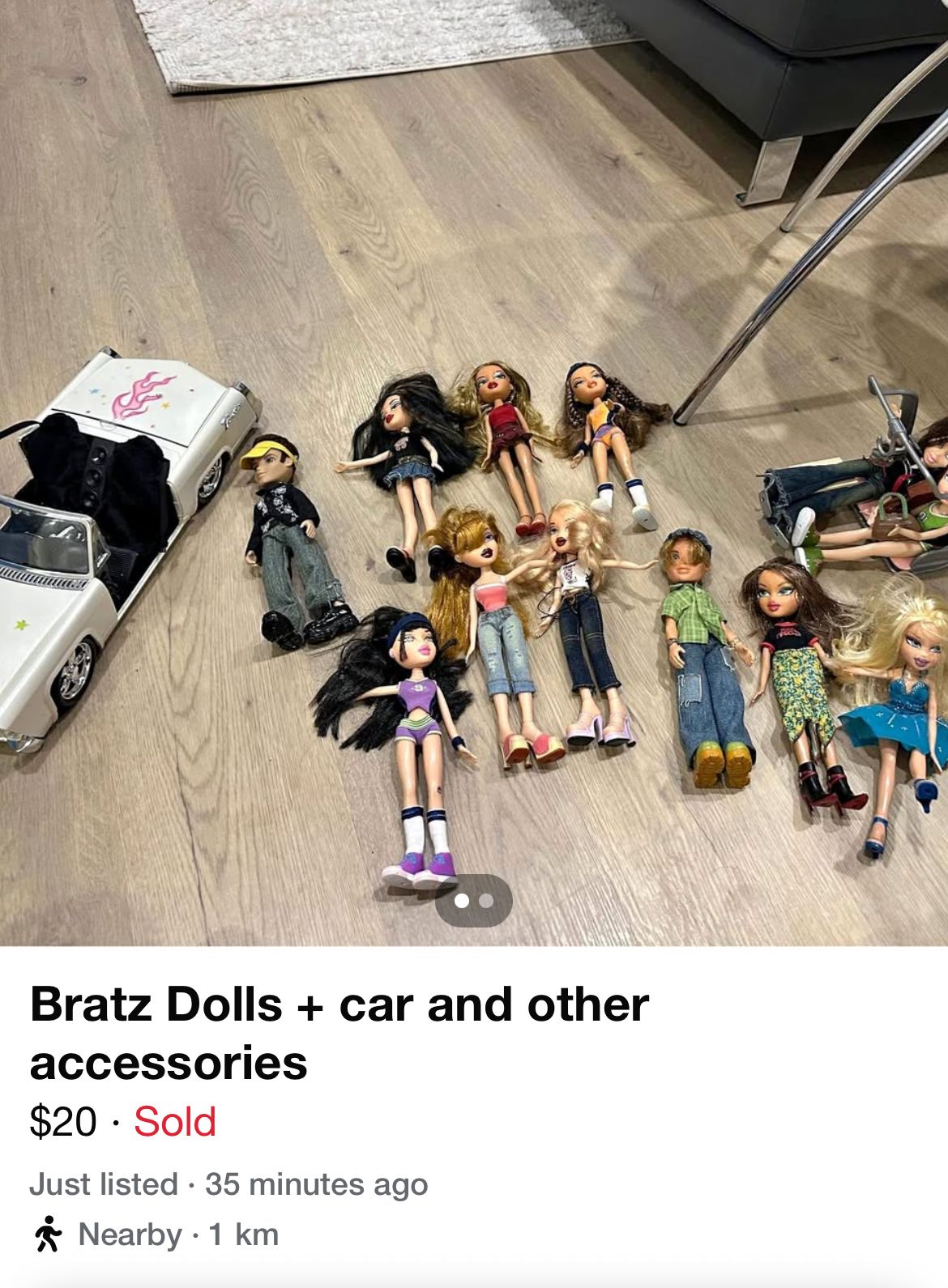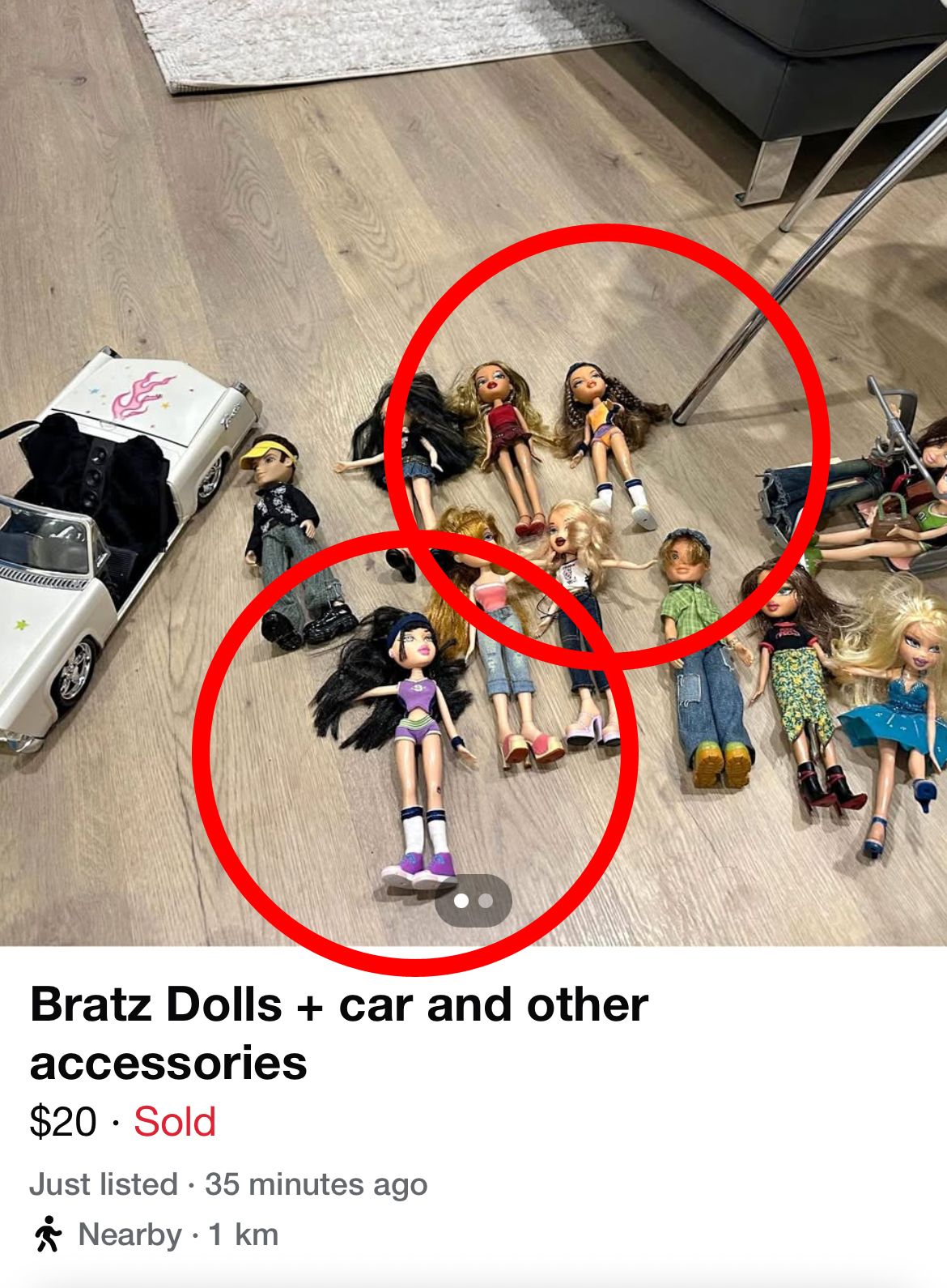 Moving on because that’s a lot of Bratz talk, we have another really cool Marketplace pickup. A reminder that I talked all about my exact Facebook Marketplace strategy in Issue #77 and expanded on the podcast. Here’s the listing and don’t worry, there’s op shop scores later on: